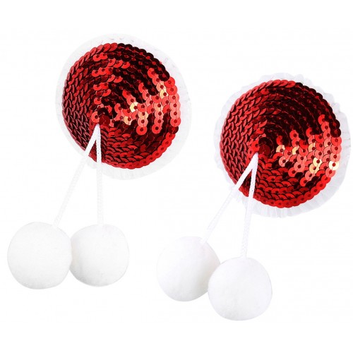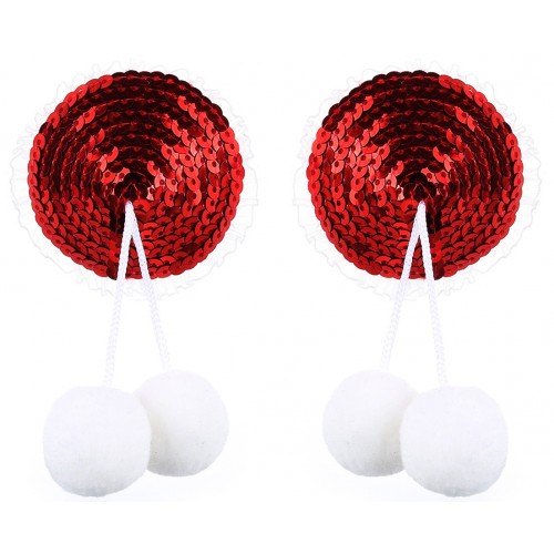 Пэстисы полностью покрыты красными пайетками, сверху украшены белыми помпонами!