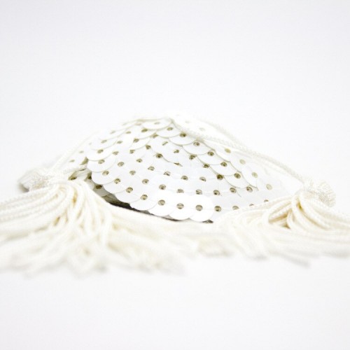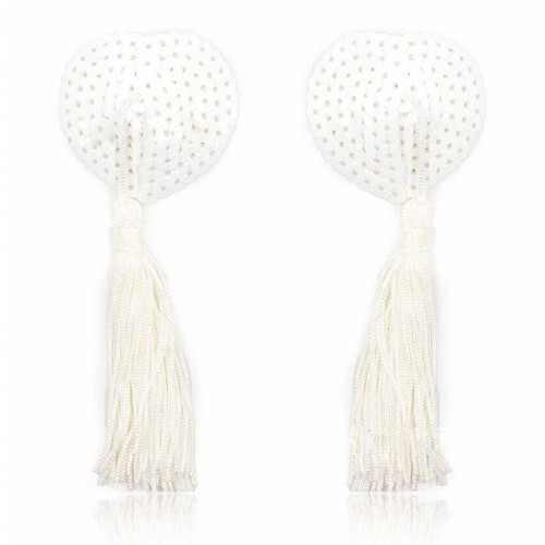 Наклейки на соски многоразовые. С контрастной кисточкой. Конус выполнен из полиуретана, внутри — слой силиконового геля. Декор: пайетки, текстильная кисточка.