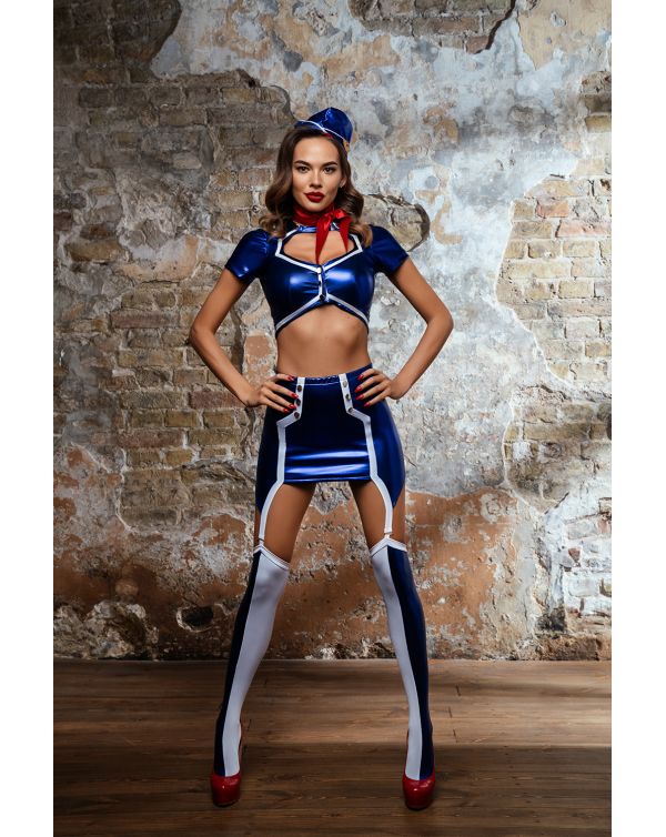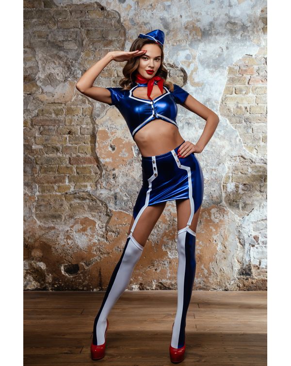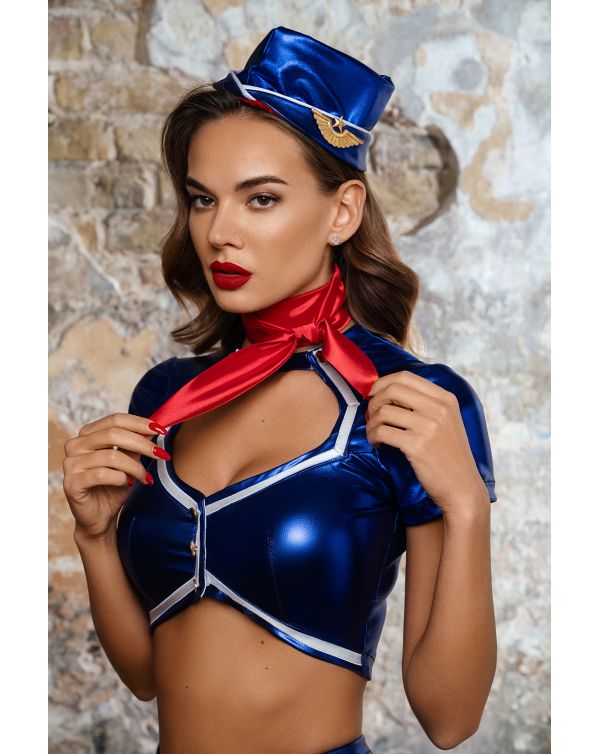 Образ сексуальной стюардессы полон энергии и необузданной страсти. В эротическом костюме Стюардесса есть сексуальный топ, короткая облегающая юбка с пажами для чулок, кокетливая пилотка, гетры и воздушный платок на шею. Предложите своему «пассажиру» напиток для полного соответствия образу, и полёт пройдет на высоте.