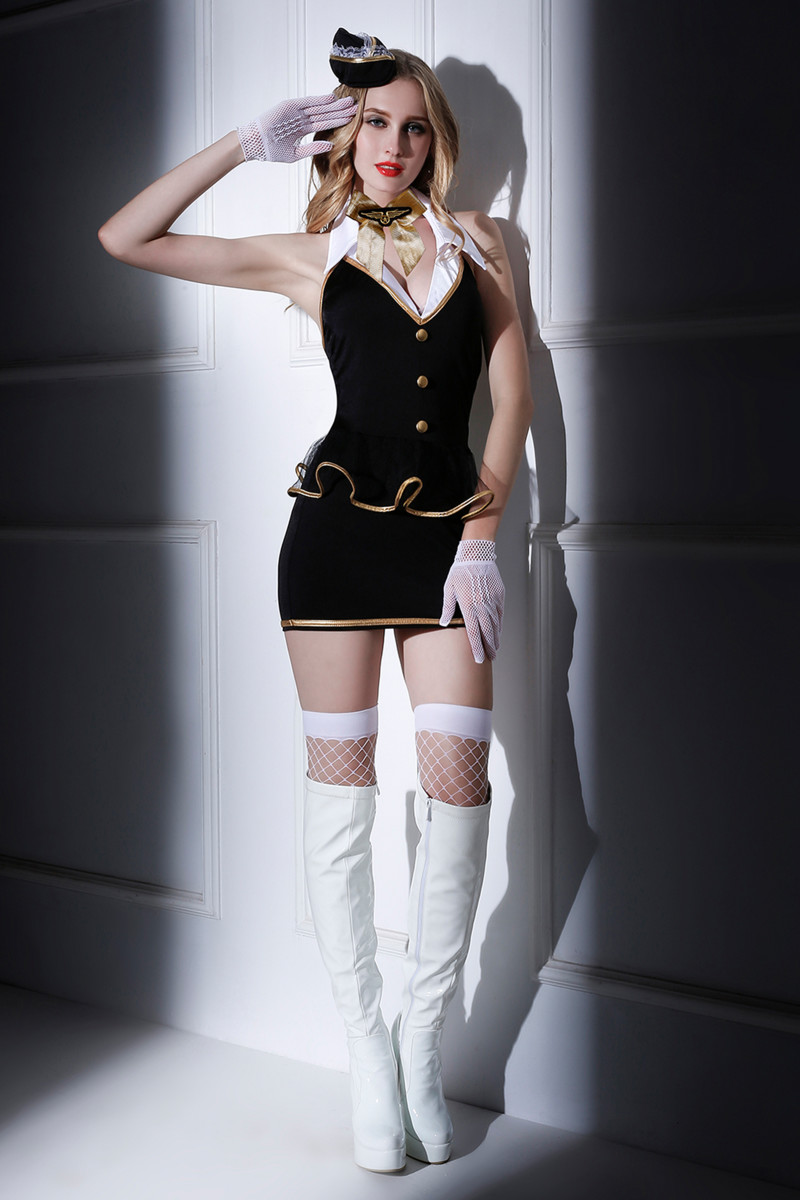 Костюм стюардессы Candy Girl Amber (платье, трусы, перчатки, чулки, галстук, ободок), OS
