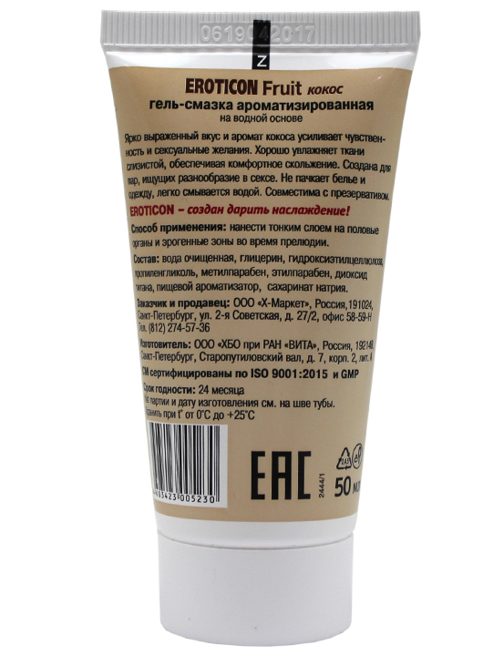 Гель-смазка орально-вагинальная «Кокос», 50 мл