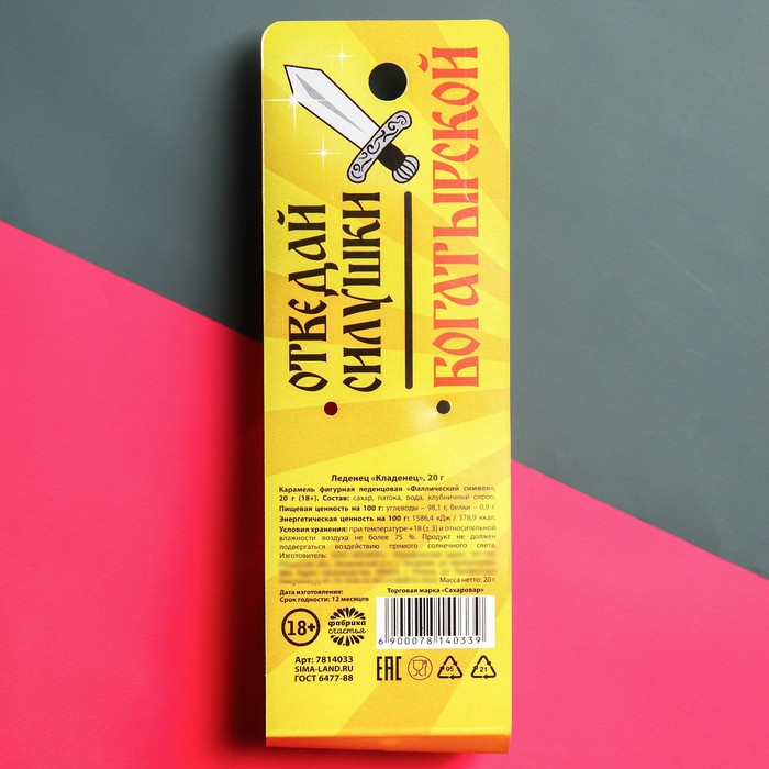 Леденец «Кладенец», со вкусом клубники.Масса 20 гСостав: сахар, патока, вода, клубничный сиропПроизводитель: ООО "Натуральные сладости", 141603, Московская область, г. Клин, ул. Радищева, 17а