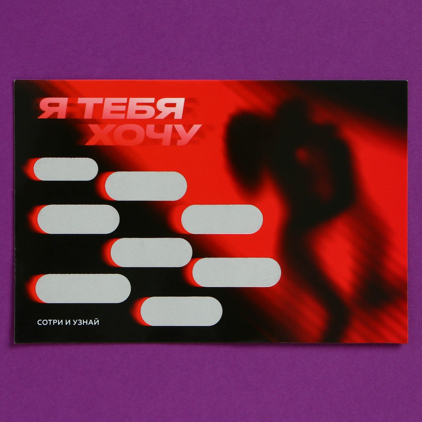 Эротическая открытка 18+ плюс со стирающимся слоем «Я тебя хочу» – праздничный мини креативный подарок поздравление на дату отношений и свадьбы.