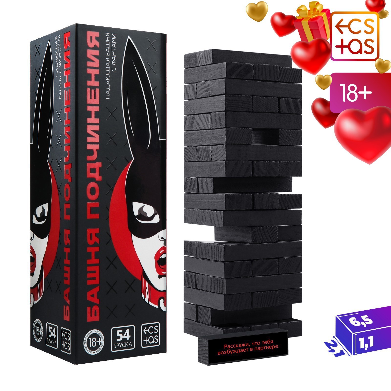Падающая башня дженга «Башня подчинения» с фантами, 54 бруска
