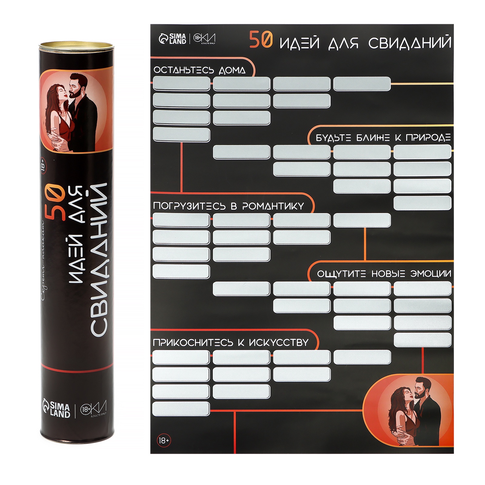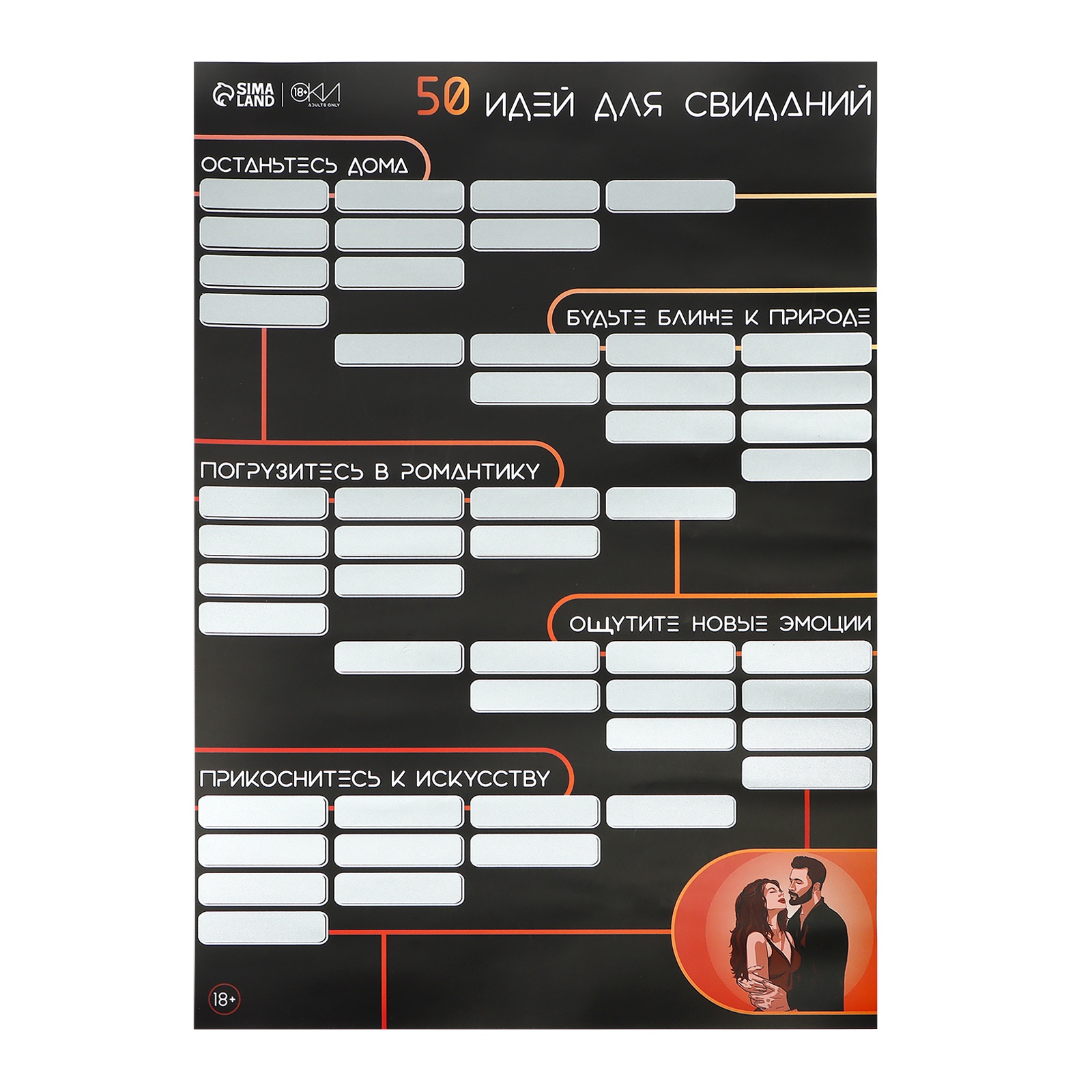 Плакат для двоих со скретч-слоем «50 идей для свиданий», А3