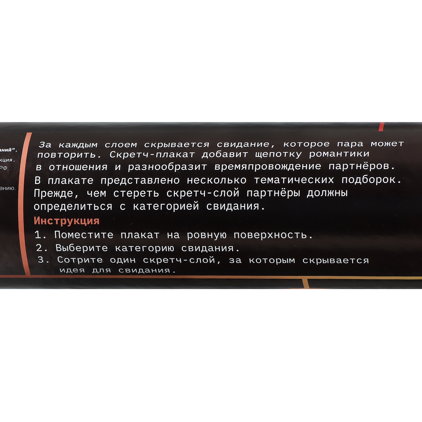 Этот стильный плакат формата A3 наполнен 50 дерзких и оригинальных идей, которые разожгут ваше желание и сделают каждое свидание незабываемым. От уютных домашних моментов до захватывающих приключений на свежем воздухе — каждая идея вдохновит вас на новые ощущения и страстные открытия.