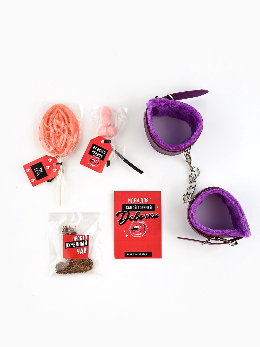 Подарочный набор гифтбокс «Самой лучшей»: леденец, мармелад, чай, наручники