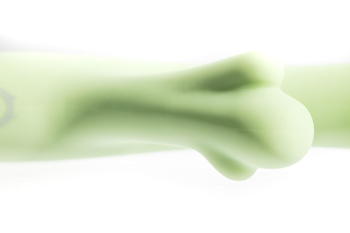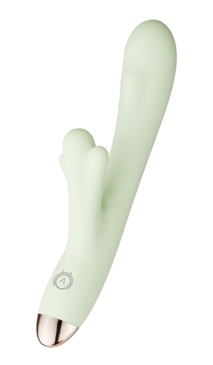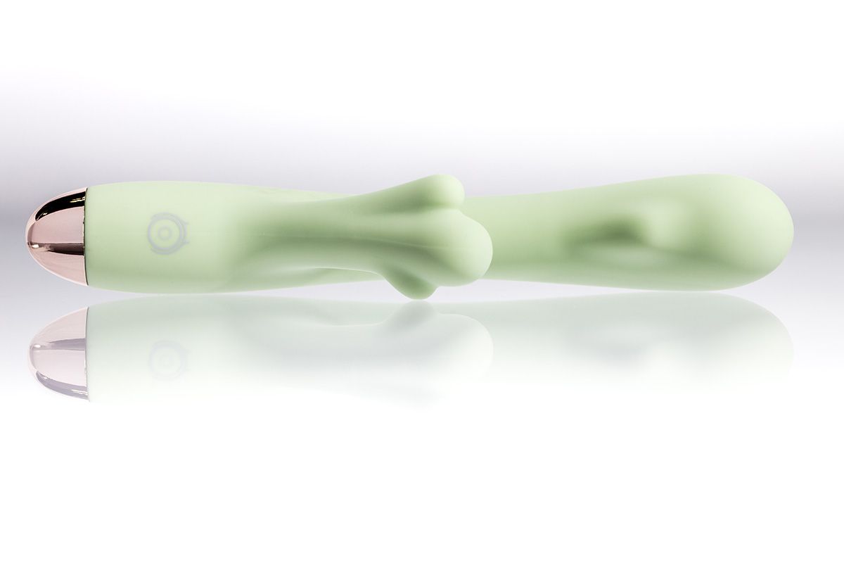Салатовый вибратор Maccia H с клиторальным отростком и подогревом 22 см