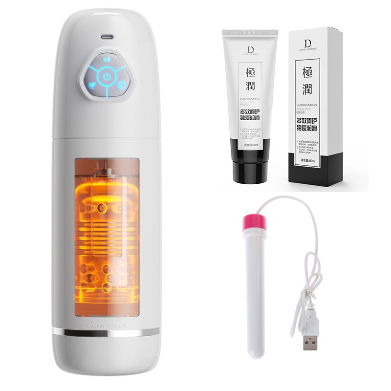 Мастурбатор имеет перезаряжаемый аккумулятор и USB-провод, который входит в комплект. Также в комплект входит смазка на водной основе 60 мл и нагревательный элемент.