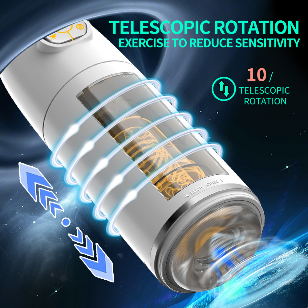 Шикарная мужская игрушка - телескопический мастурбатор с 10 уникальными режимами пульсации и 7-цветной подсветкой. Имеет голосовое сопровождение, позволяющее насладится при мастурбации томными вздохами и возбуждающими стонами. Если вы не хотите, чтобы вас услышал кто-то еще, в комплекте есть наушники. Способен совершать до 400 фрикций в минуту.