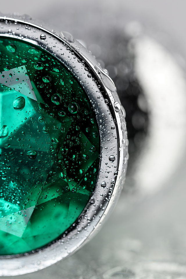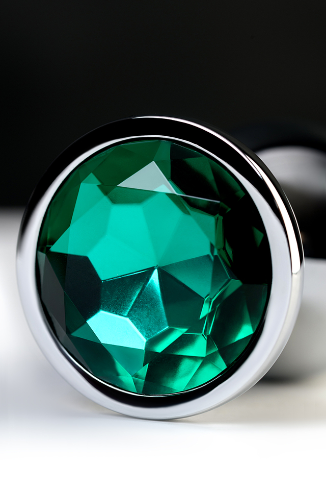 Анальная втулка Metal by TOYFA, металл, серебряная, с зеленым кристаллом, 9,5 см, Ø 4 см, 145 г