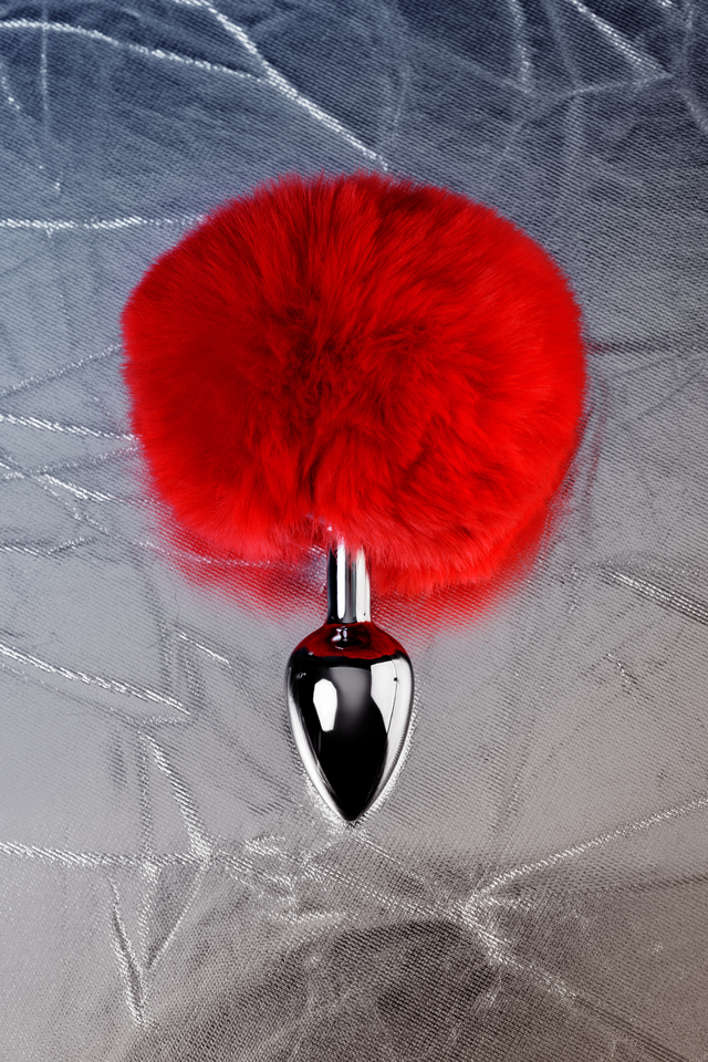 Анальная втулка металл+искусственный мех, с красным хвостиком