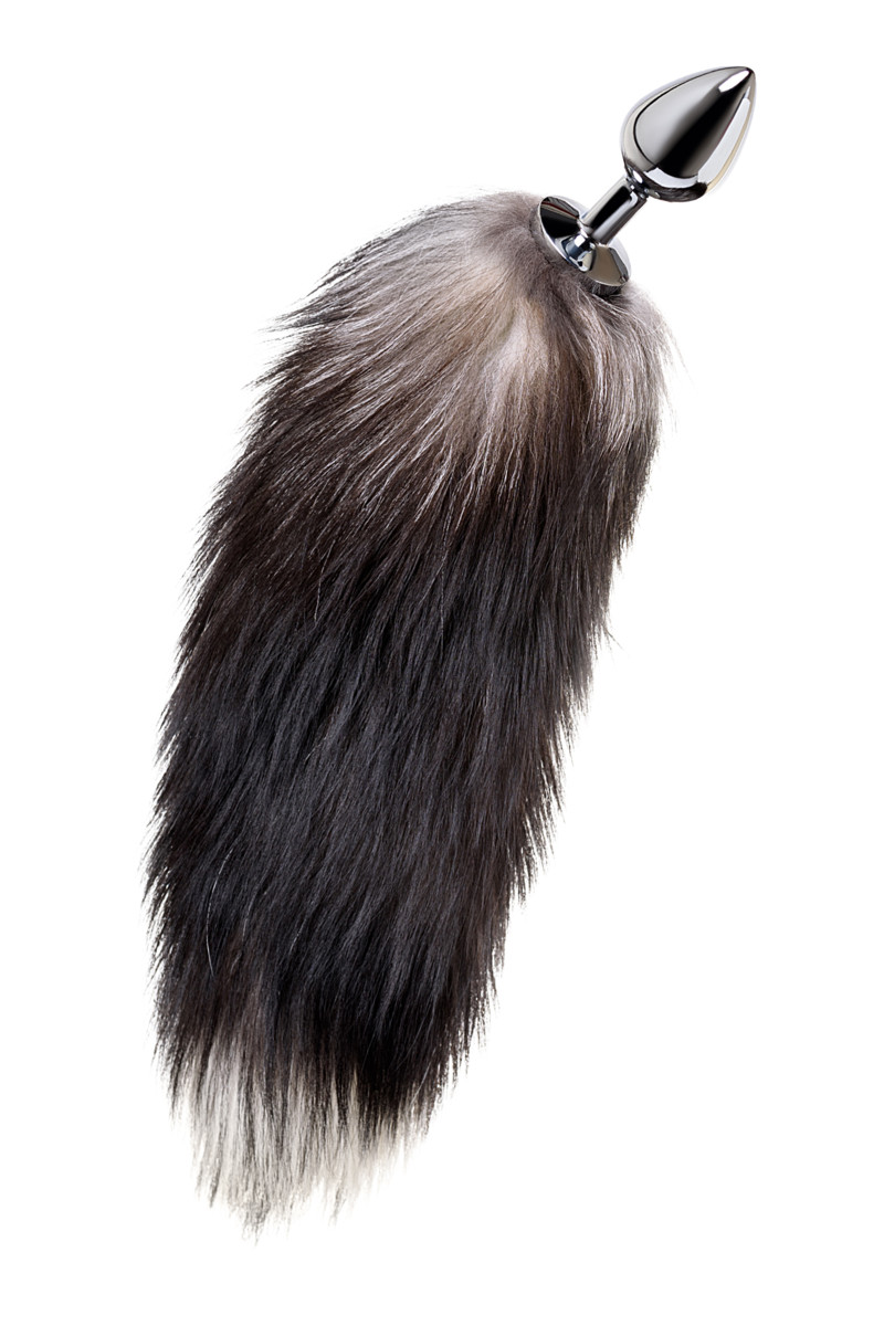 Анальная втулка с хвостом черно-бурой лисы, металл, 3,3 см