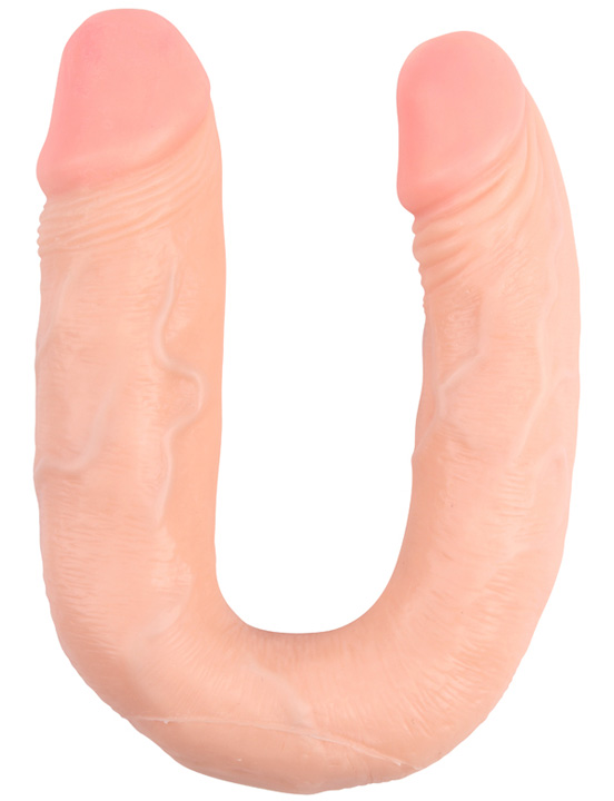 Двойной анально-вагинальный фаллоимитатор телесного цвета. Реалистичный фаллоимитатор страстно поразит разгоряченное лоно вожделенной плоти, продвигаясь с каждым движением все глубже. Пикантным дополнением станет анальный фалоимитатор, который подарит горячую анальную стимуляцию. Эта игрушка станет желанным дополнением в Вашей спальне.Фаллоимитатор двухголовый, шикарного серебристо-перламутрового цвета, согнутый в форме буквы U. С ним Вы сможете воплотить в жизнь ваши самые смелые и сокровенные желания и сексуальные фантазии и провести необычные сексуальные эксперименты. Длинный ствол реалистичной формы покрыт бугристыми венками, которые будут дополнительно стимулировать стенки влагалища. Ярко выраженные структуры головки усилят ощущения. Вы сможете получать наслаждение, как в одиночестве для двойного проникновения, так и вдвоем с партнершей. Он выполнен из безопасного материала, быстро принимающего температуру тела.