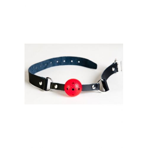 Ремешок изготовлен из натуральной кожи. Никелированная пряжка. Шар изготовлен из пластика. Размер универсальный. Кляп-шар один из самых распространённых атрибутов BDSM.