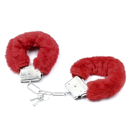 Красные металлические наручники с мехом