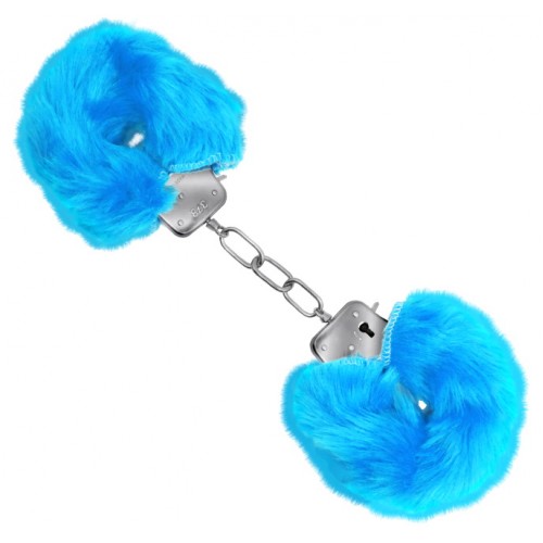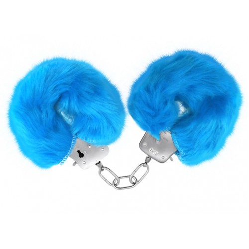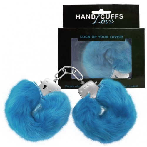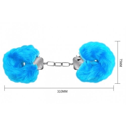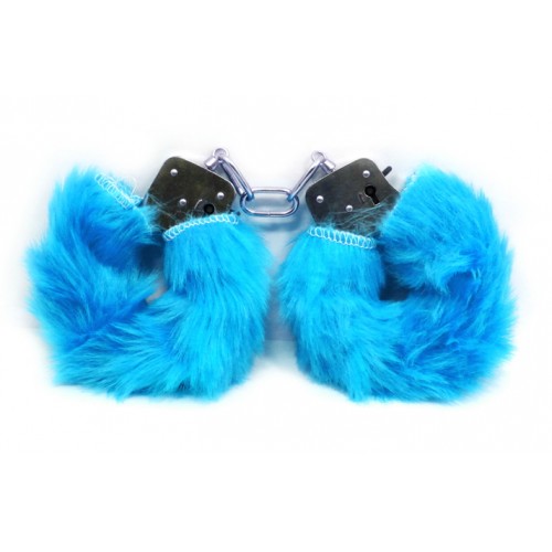Металлические наручники с мехом голубые