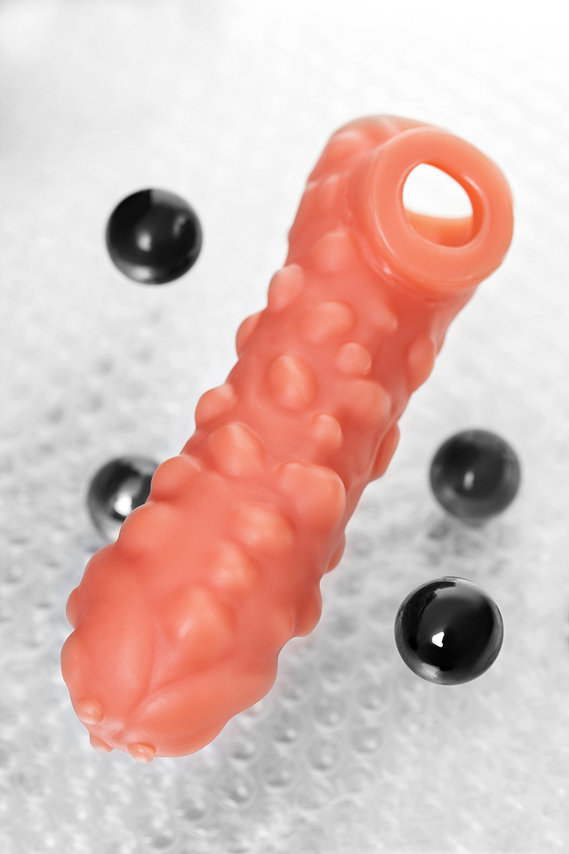 - Желанное разнообразие. Насадка придает члену внушительный объем и новую форму, поэтому как нельзя лучше подходит для сценариев «Секс с незнакомцем». При этом выразительный рельеф с выпуклыми точками и шипами привносит незабываемый эффект новизны в ощущения партнерши.