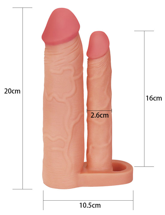 Ваш партнер получит удовольствие от более глубокого проникновения благодаря 5 см удлинителю на кончике. Это реалистичное удлинение супер-эластичное, подходит для большинства размеров, достаточно плотное, чтобы прослужить дольше, а сверхмягкий материал ощущается как вторая кожа. Внешняя поверхность текстурирована с реалистичными венами и имеет выпуклую головку.