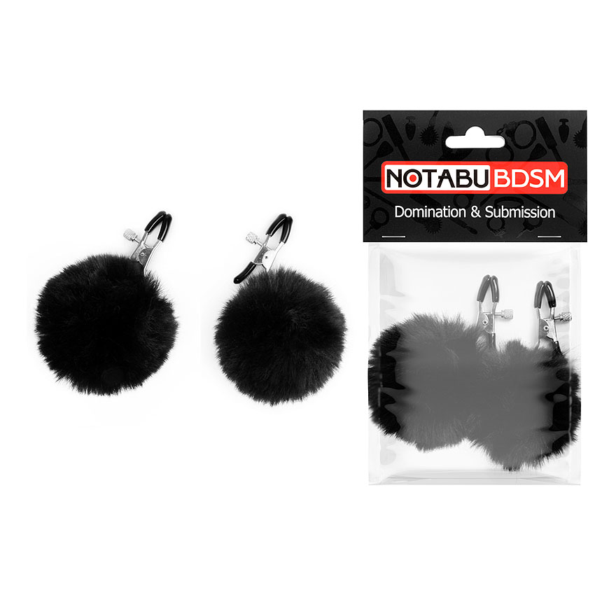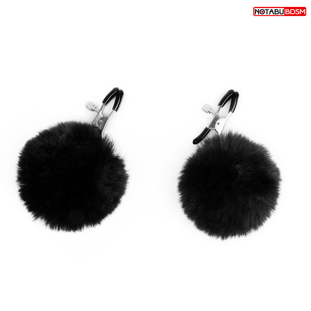 Оригинальные зажимы для сосков, украшенные меховыми помпонами, придутся по вкусу любителем БДСМ-аксессуаров!