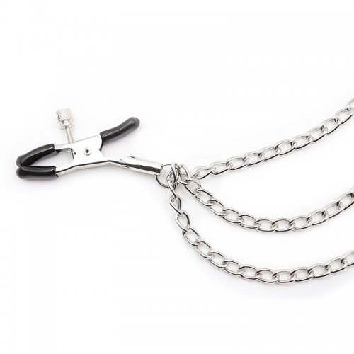 Зажимы для сосков с тройной серебряной цепочкой