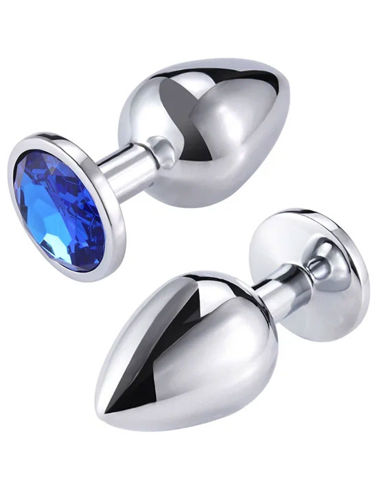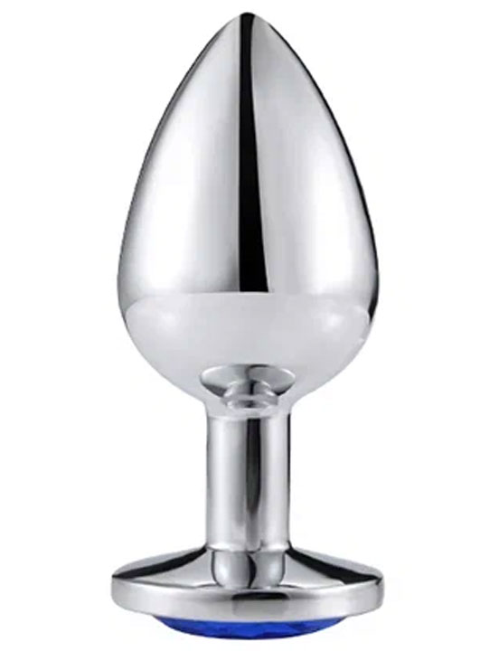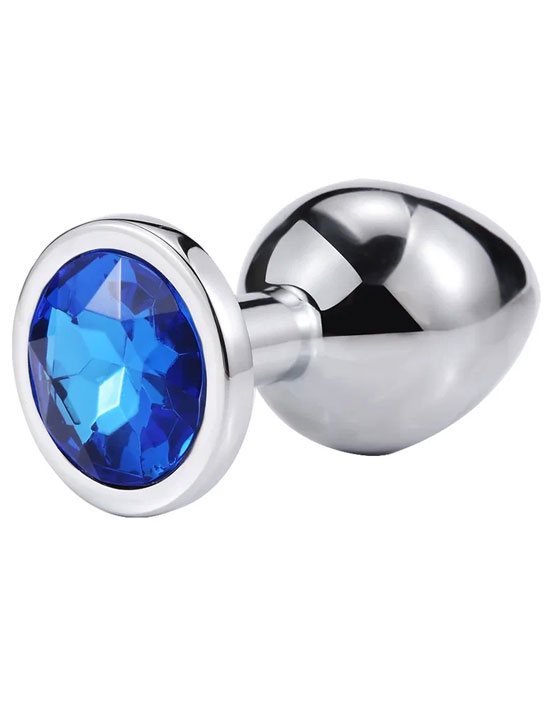 Анальная пробка металлическая iWonder c синим кристаллом, серебристая, 28x72 мм