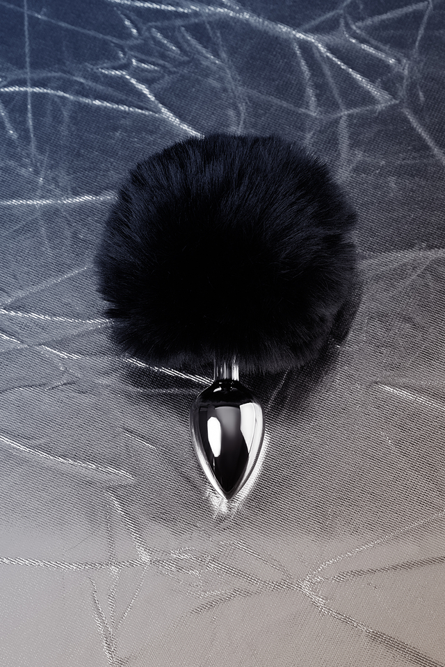 Анальная втулка металл+искусственный мех, с черным хвостиком