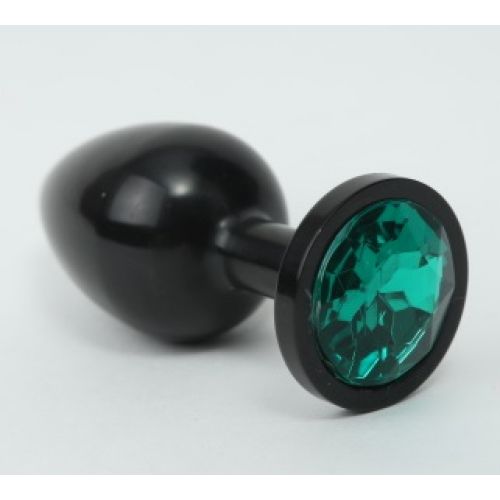 Анальная пробка металл черная с зеленым стразом
