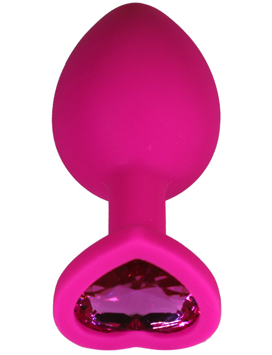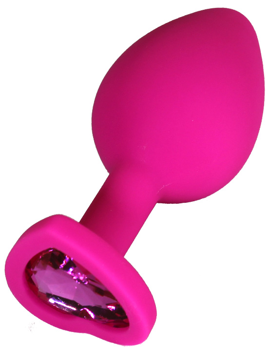 Анальная пробка силиконовая розовая с кристаллом сердце, 33x80 мм