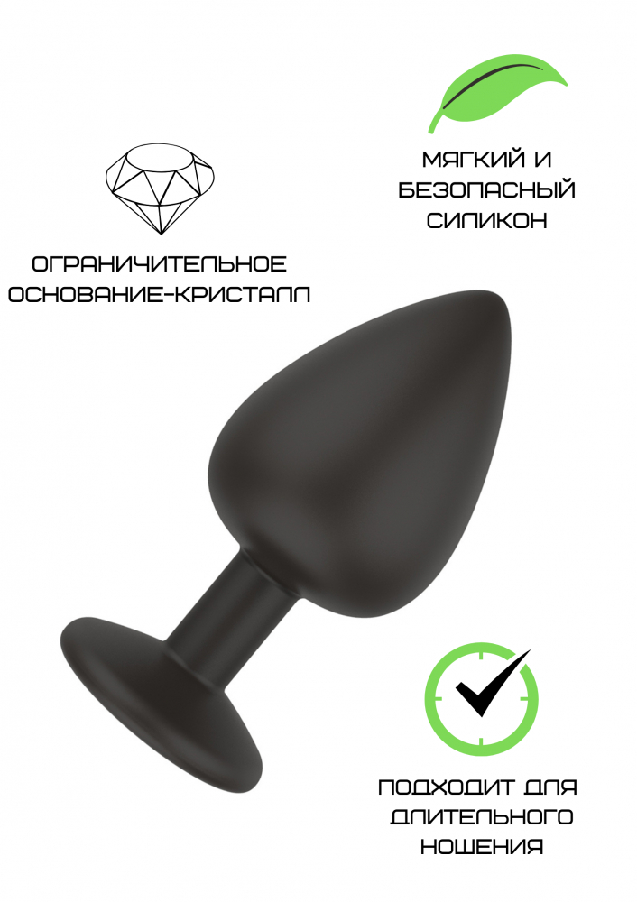 Анальная пробка выполнена из гипоаллергенного силикона и украшена красивой стразой в основании.