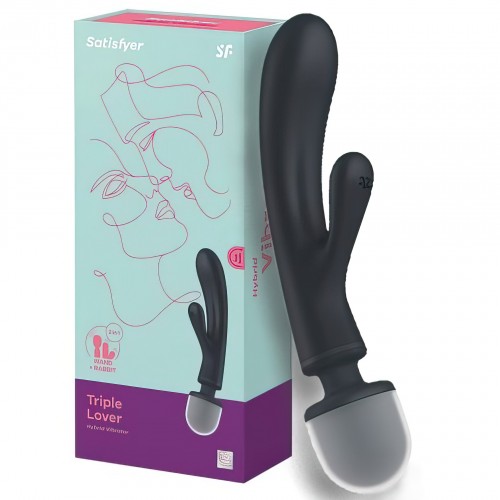Двусторонний вибратор с клиторальным стимулятором Wand + Rabbit Satisfyer Triple Lover