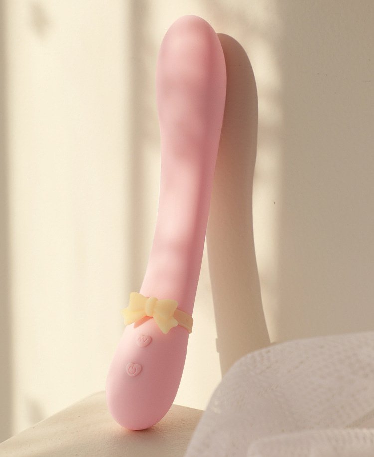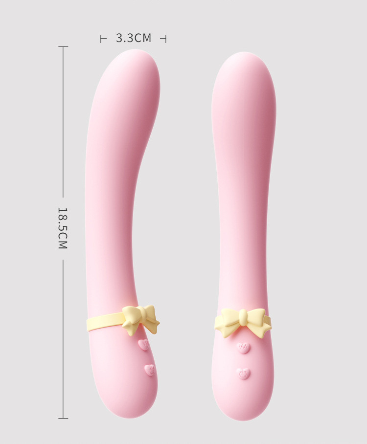 Элегантный вибратор розового цвета с милым бантиком выполнен из мягкого, тактильно приятного медицинского силикона, гипоаллергенный.