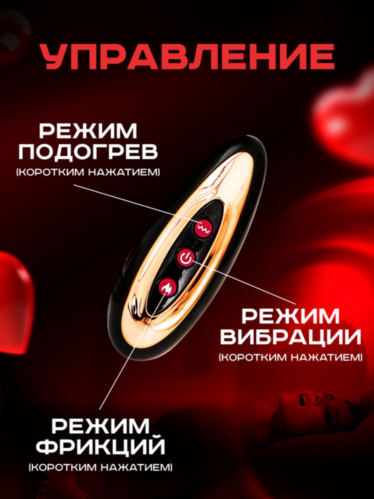 Для управления работой эротического аксессуара с помощью пульта, необходимо сначала нажать кнопку включения/выключения на его корпусе, а затем использовать кнопки на самом пульте. Выключить секс-игрушку также можно с помощью соответствующей кнопки на пульте.